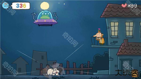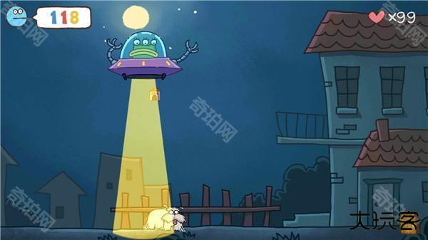 这个关卡和第2关一样的操作,需要将狗狗吸到飞碟上即可通关。