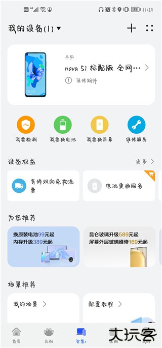 1、在本站下载安装并打开我的华为服务最新版本,进入软件,为用户提供了附近门店,全屋智能,玩机攻略等快捷入口。