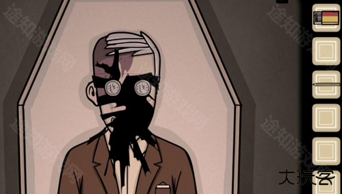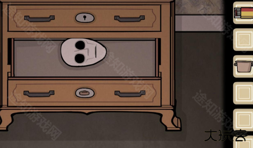 过去:输入排风扇上的时间场景发生变化,Albert的遗像摔在地上拿里面的钥匙开抽屉获得面具,在镜子前戴上面具,将墙壁上的图案顺序告知未来