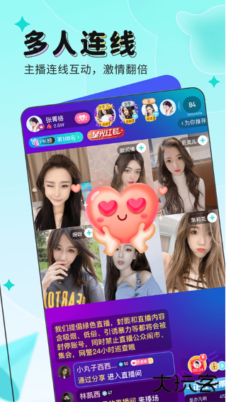 1、直播互动:用户可以与高颜值主播在线实时互动,观看直播并进行交流。