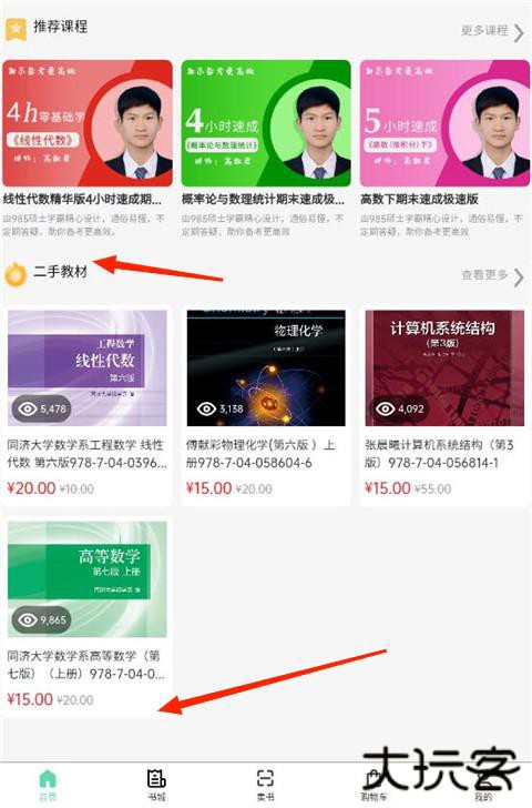 1、滑倒首页的底部,选择二手教材这一栏,里面提供了众多的二手书籍