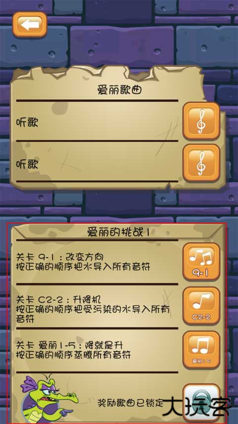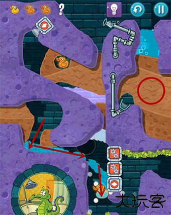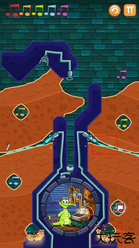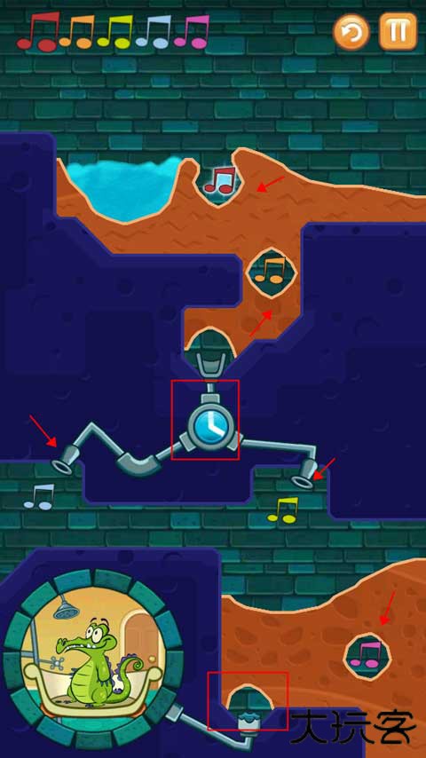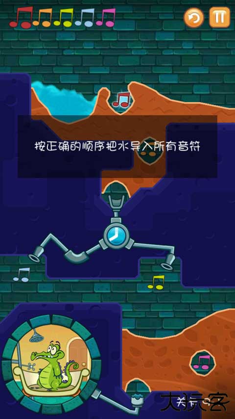 2、第一关就是按照正确的顺序将水导入所有的音符,并且还要保证小鳄鱼有水洗澡。