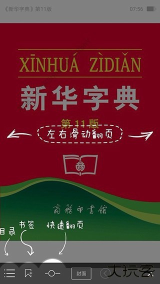 1、点开新华字典的界面,在白框中右侧有个书形的小黄标,点此可以实现屏端直接翻页。