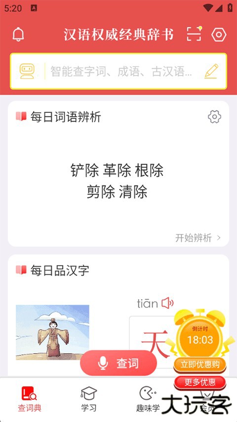 新华字典部首查字完整收录第12版内容,可通过拼音、部首或笔画快速检索汉字。手写识别与语音搜索结合,让查字过程更加便捷自然。新华字典部首查字app下载里专业播音员录制发音,可进行跟读与发音对比。还有趣味小游戏与闯关模式让汉字学习更具互动性与趣味性!