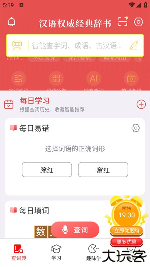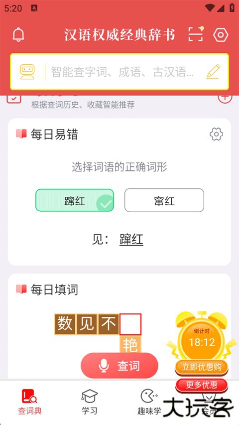 4、除此之外,首页下方还提供每日填词等趣味学习玩法,从此学习不枯燥;