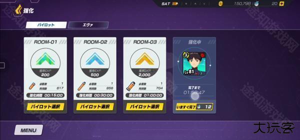1、游戏快捷键在左下角MENU菜单处,分别有着大厅、队伍编辑、强化、进化、武器、以及对话回溯;