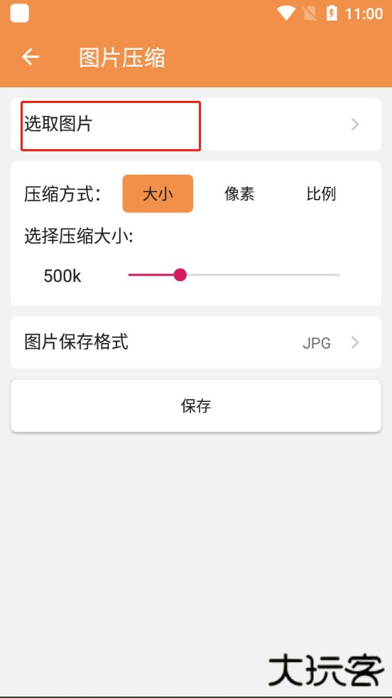 2、用户需从相册中选择需要压缩的图片,然后根据需求设置图片压缩的参数。最后,点击下方的【保存】按钮即可完成图片压缩并保存处理后的图片。