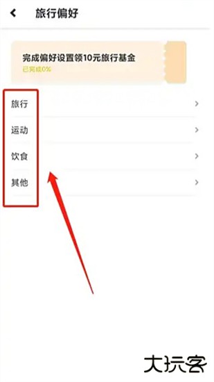 3、进入 旅行偏好 界面后,勾选符合你需求的位置或旅行选项。