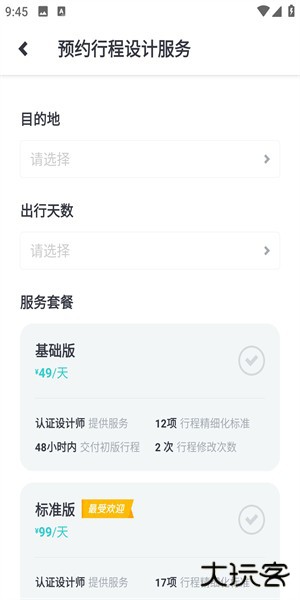 2、这里有基础版套餐以及标准版套餐可以选择,帮助你轻松定制出行计划。