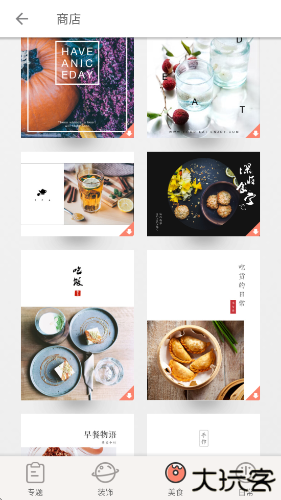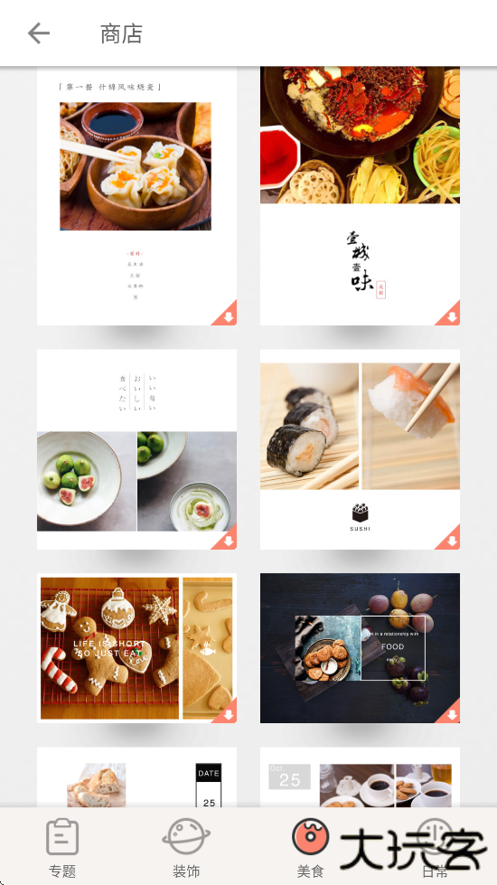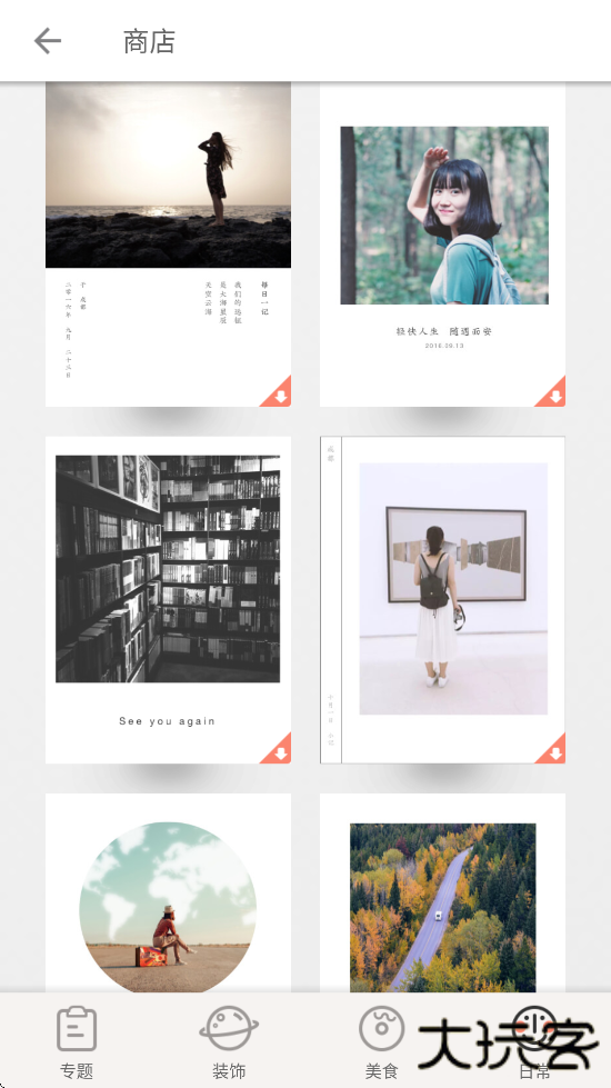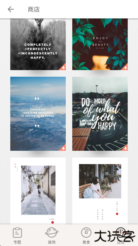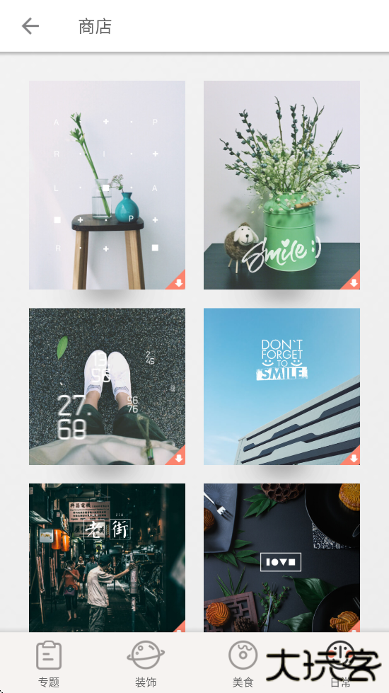 动态模板:定期更新磁贴和滤镜,支持马卡龙色系设计。