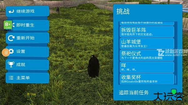 6、同时还可以完成很多挑战,比如:拆毁巨羊阵,毁坏祖先传下的文化请迹。山羊城堡,登基加冕为众羊女王!祭祀仪式,为了一个更伟大的目的而光荣牺牲;