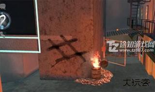 2、然后把蓄电池带到这一条小巷里,发现一个生锈的圆台。
