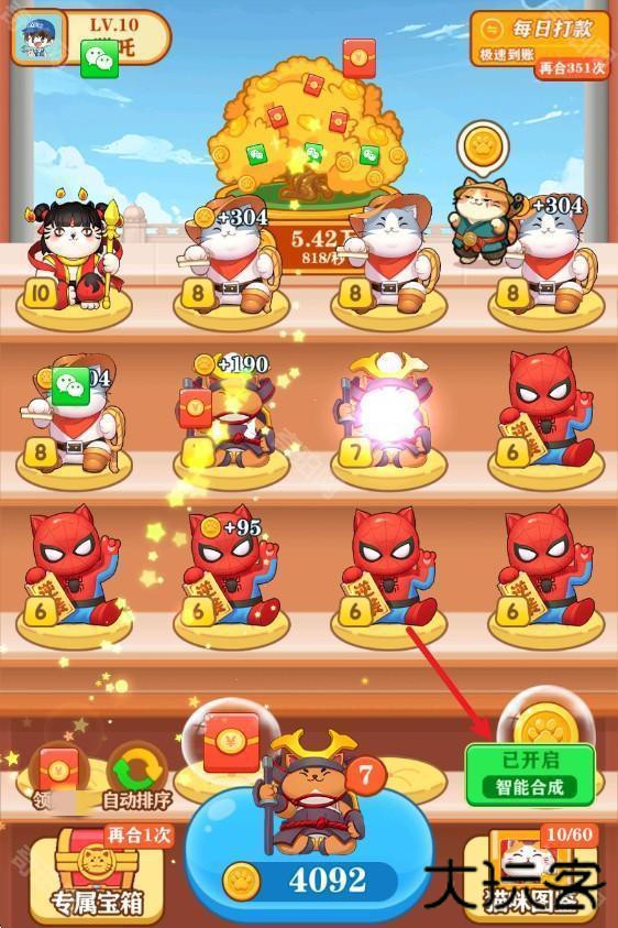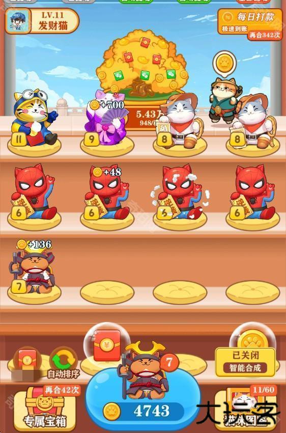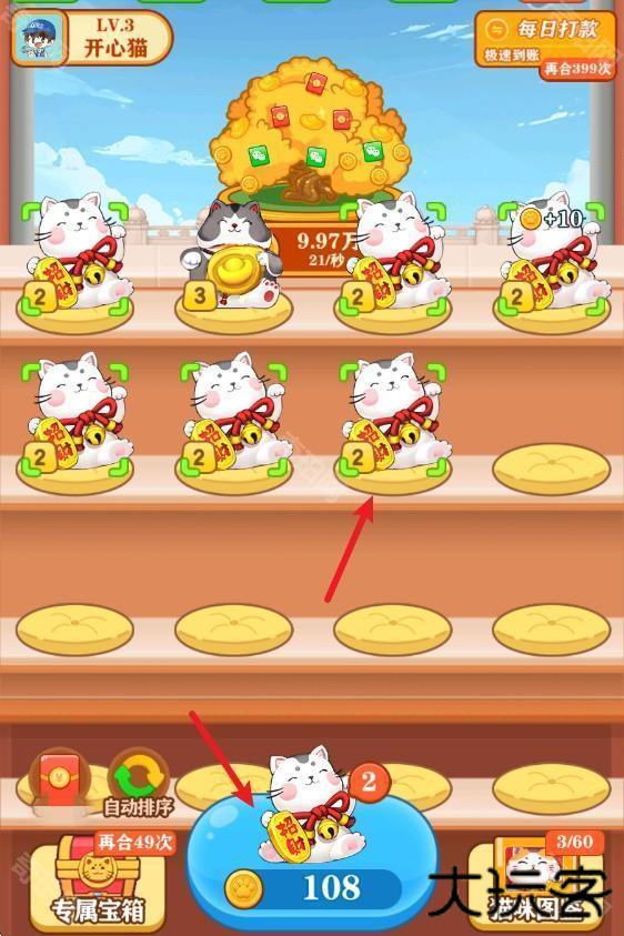 2、相同的猫咪可以合成出更高等级的猫咪。