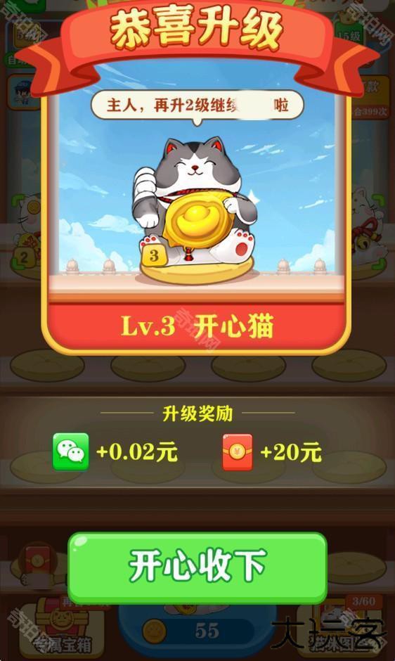 3、首次解锁全新猫咪的时候,我们还能够获得奖励呢。