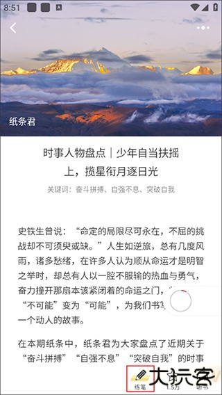 3、紧接着进入纸条详情页,点击底部“练笔”图标;