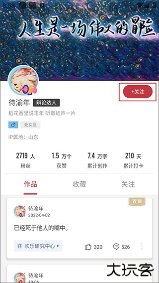 3、最后进入好友主页,点击上方“关注”按钮即可添加好友。