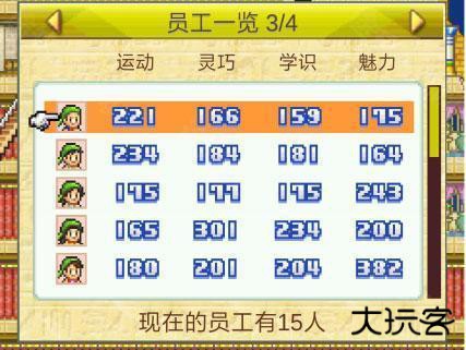 对于不同工作的员工可以进行指导,结束后员工的属性会得到针对性提升。
