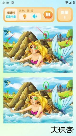 2、进入游戏界面对比两张图片,找出其中的不同之处。