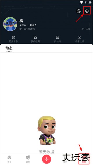 1、打开并登录掌上无畏契约app,点击右下角我的,然后点击右上角的设置