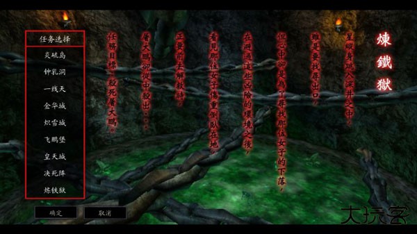 过关提示:练铁狱是一个深潭,上面有很多铁链绑着你身上中了毒,每个一段时间就要停顿一下并失去血,所以刀,锤子,长,剑的暴怒刚放就会被卡住,但可以放匕首暴怒,在最底层的箱子里有刀,匕首,剑,而长和锤子则在上面的铁链上。开始只有屠城一个人比较好打,用匕首的↑A可以不断的连续的打到屠城等打到一半的时候,会出来四个蒙面人,由于这四个人极其厉害,千万不要被他们围到,不然极难逃脱,先跑啊跑,有机会就去砍屠城几刀,气满了就放匕首的暴怒↓↑↑A ,如果很久都没有打死屠城的话,他会叫蒙面杀手退下,那么就趁机干掉他。