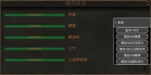 1.无限属性技能加点,玩家的角色可以获得大量的声望,荣誉,统治权,士气,让你能成为一个真正的过往。