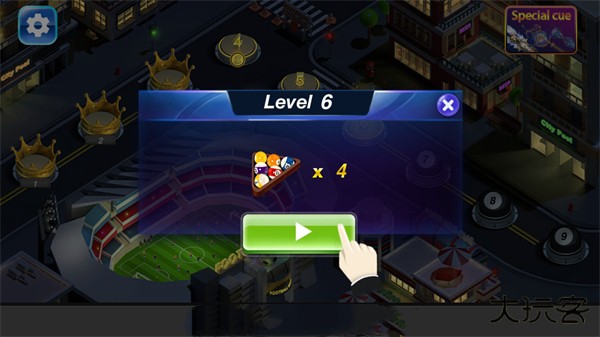 3.从入门到专业,游戏提供多种时尚主题关卡,适合不同水平的玩家挑战自我。不断磨练技巧、调整策略,击败强劲对手,解锁全新城市酒吧场景,赢取冠军奖杯,最终成为备受赞誉的台球之城冠军。