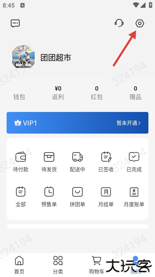 2、在【我的】页面,点击右上角设置图标进入下一界面。