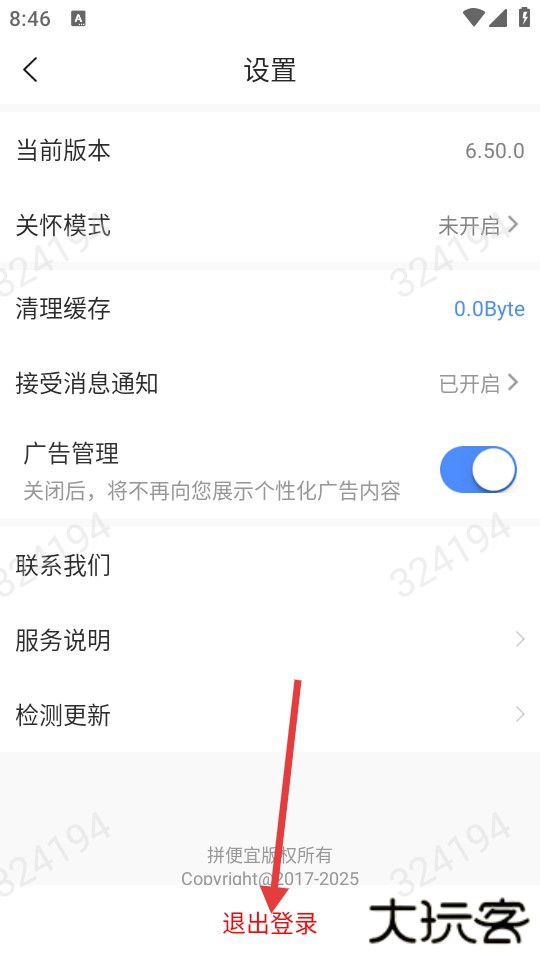 3、在【设置】页,点击底部【退出登录】按钮触发确认弹窗。
