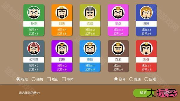 3、如图所示,这是选择阵营的界面,提供了刘备、曹操等多种阵营;
