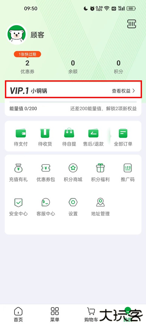 2.在我的页面之后,下方有一个vip选项,点击进入vip页面