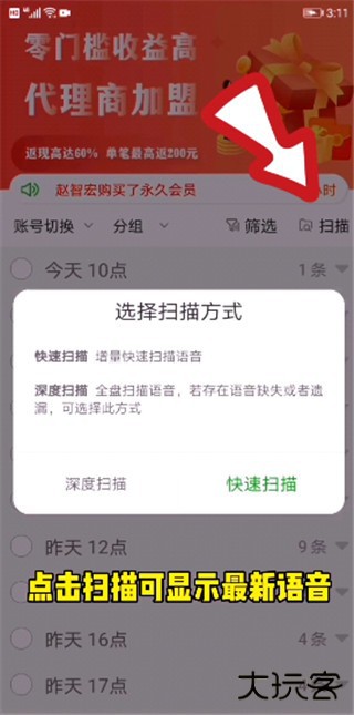 3、提供了扫描按钮,一键就可以扫描手机,呈现微信中的音频文件;