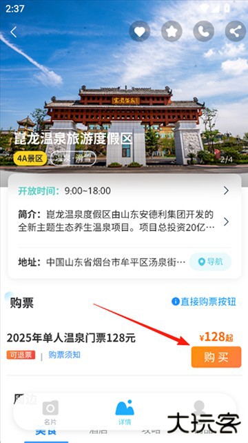 5、在景区详情页单击“购卖”,进入商品详情页面。
