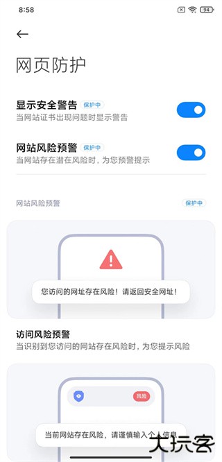 5、将显示安全警告和网站风险预警关闭即可,温馨提示,最好是开启状态,这样能更好的保护您的浏览安全。