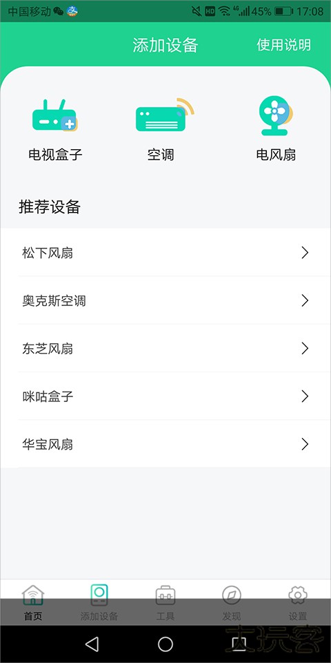 3、支持空调,电视,机顶盒,网络盒子,DVD,投影仪等多种电器,是真正的手机遥控器。