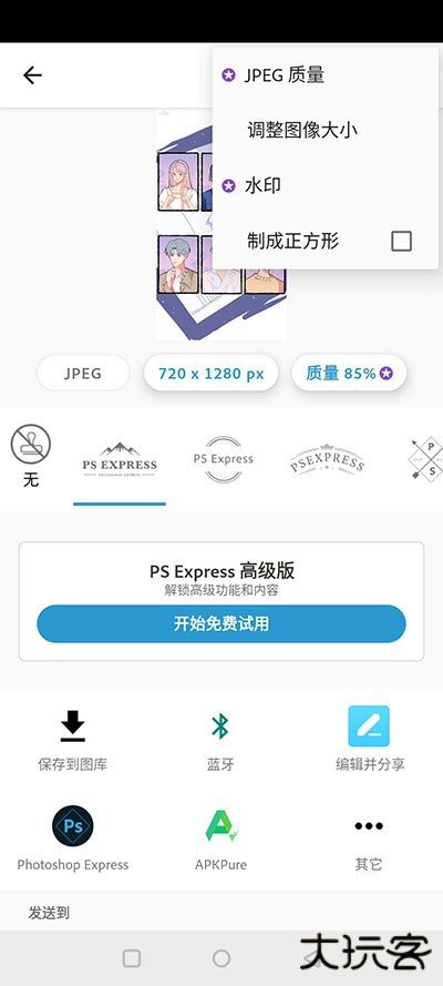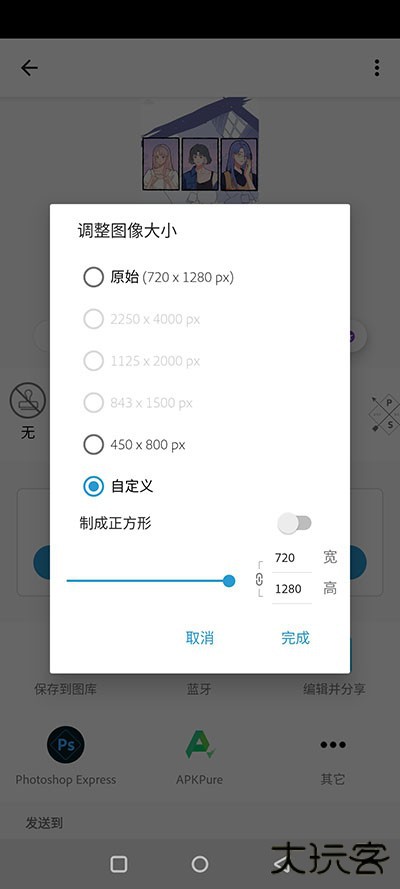 长按图片查看原图进行对比,点击右上角的分享按钮,保存您的作品。这样,一张经过手机PS处理的图片就完成了。