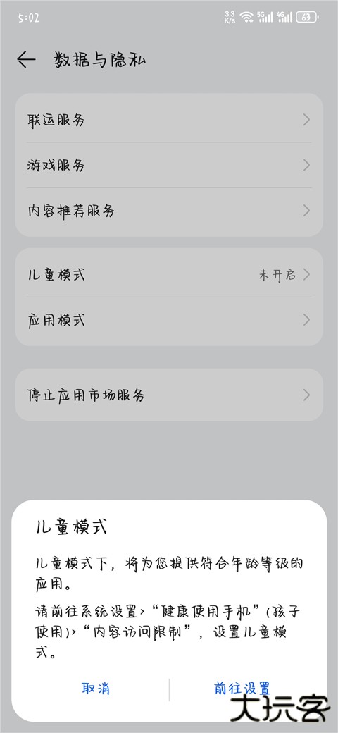 2、之后进入“个人中心”后,点击“设置”,现在数据与隐私中的儿童模式”。