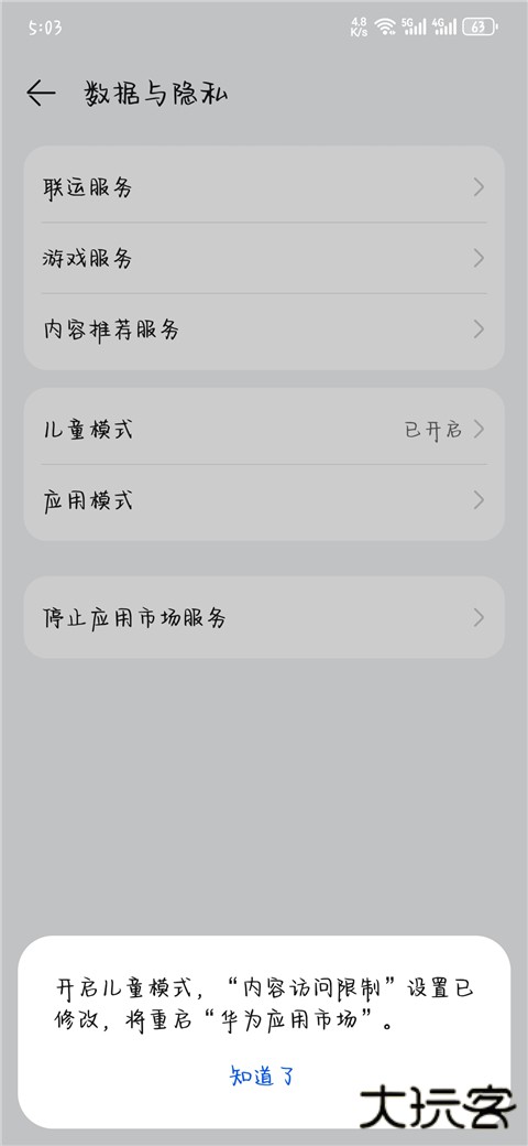 4、当用户在设置完成后,提示重启华为应用市场软件就可以了。