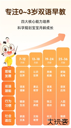 1、分月龄定制:根据宝宝不同的月龄阶段,提供针对性的学习内容和玩具。