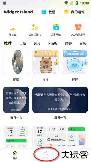 ③ 组件岛widget应用支持自定义样板与背景图片,使桌面更具个性化表达。