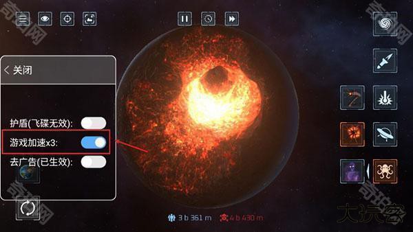 3、武器摧毁星球的动画过程比较缓慢,如果玩家想要快一点的话,可以点击二倍速。