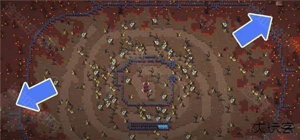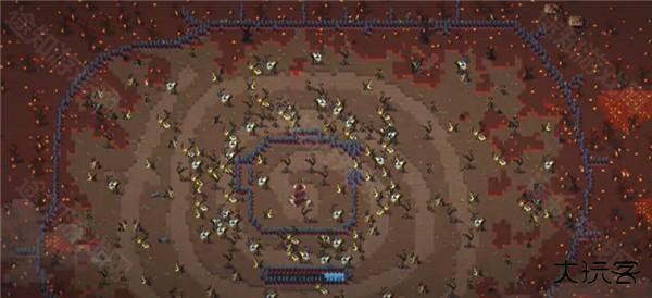3、巨石柱的周围出现了内外两圈黑红干啥呢的像是围栏或者栅栏的建筑,后期应该会有围墙的功能,而且栅栏围成的长方形区域代表更新的进度条,代表更新还有三四个月的时间。