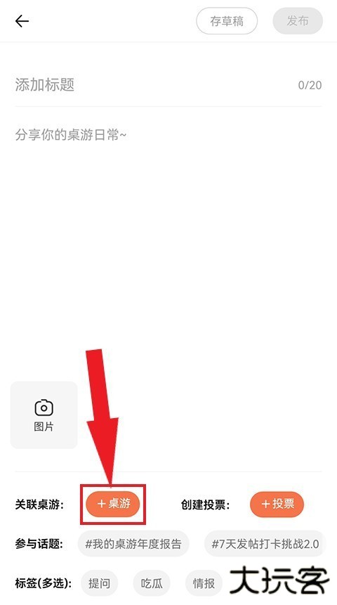 3、在发布话题前,可以先点击左下角的关联桌游,关联你要发布话题的桌游。