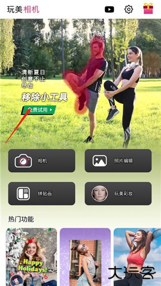 1、打开在本站下载的玩美相机,点击首页上的消除小工具