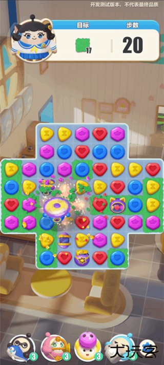4、游戏采用经典三消玩法,玩家需消除相同的方块;