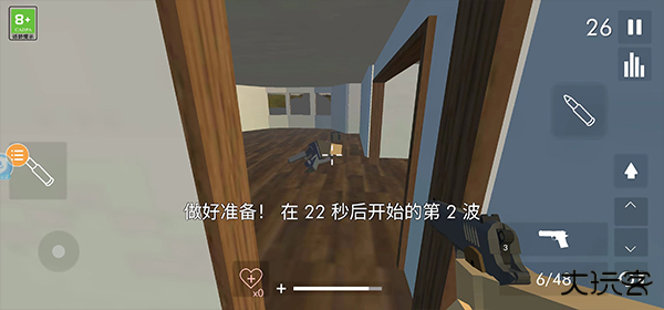 2.选择你武器,进入房间搜刮资源,蹲着等待敌人来。