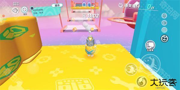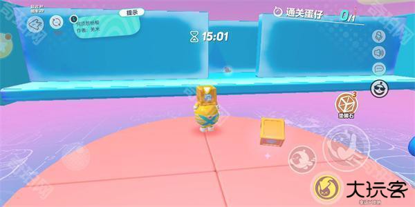 紧接着就到了本关卡的重头戏:通往迷宫的困难道路。稍有基础的新手玩家也许会利用跳跃加飞扑的动作,但令人惊讶的是这个方法在此障碍面前无法使用!仿佛一拳打在了棉花上的无助。不过,细心的玩家会发现跳出的垫脚石工具。敲黑板啦~垫脚石的正确用法!玩家拿起垫脚石,先按跳跃键,当蛋仔跳出一段距离,玩家要快速按垫脚石按键,这时最重要的是操作连贯,不能乱了手脚哦!