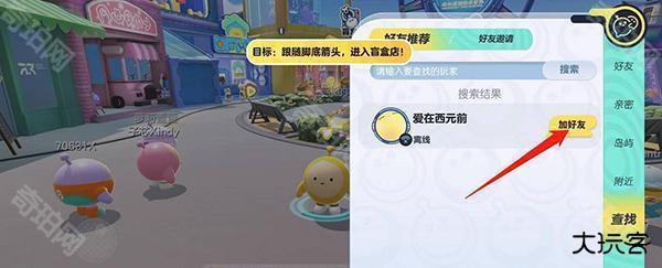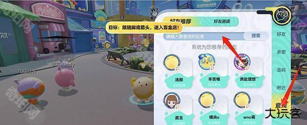 1、玩家在游戏界面中点击聊天框旁边的好友选项;