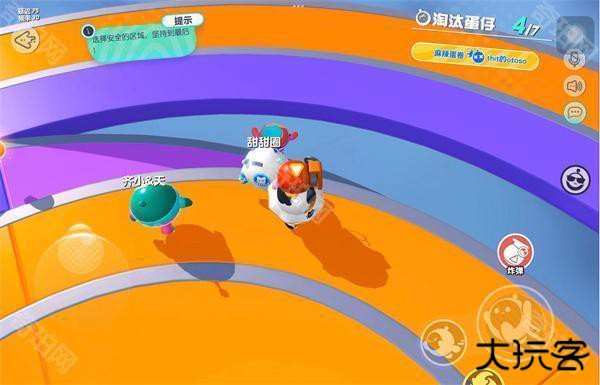 同心圆作为又一个生存关卡,考验的是玩家的随机应变能力,谁能坚持到最后,谁就能进入下一关卡。蓝紫相间的大圆盘上的环形区域会突然变成黄色。而一旦出现黄色区域,该环形就会翻转,让玩家掉落,导致玩家淘汰。所以玩家要做的就是:躲过黄色区域,躲过黄色区域,躲过黄色区域!重要的事情说三遍!当然,还要温馨提醒玩家要格外小心其他蛋仔的袭击哦~比如炸弹、落雷、咸鱼甚至蛋仔的身体撞击!