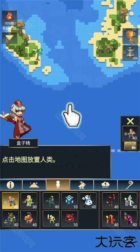 赋予能力:在你的沙盒世界模拟魔法大陆上为不同的生物赋予力量和能力,观察他们的生存发展