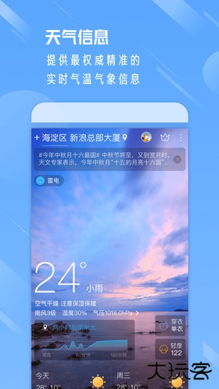 3、精准实时与24小时逐小时天气预报,温度变化冷暖早知道。